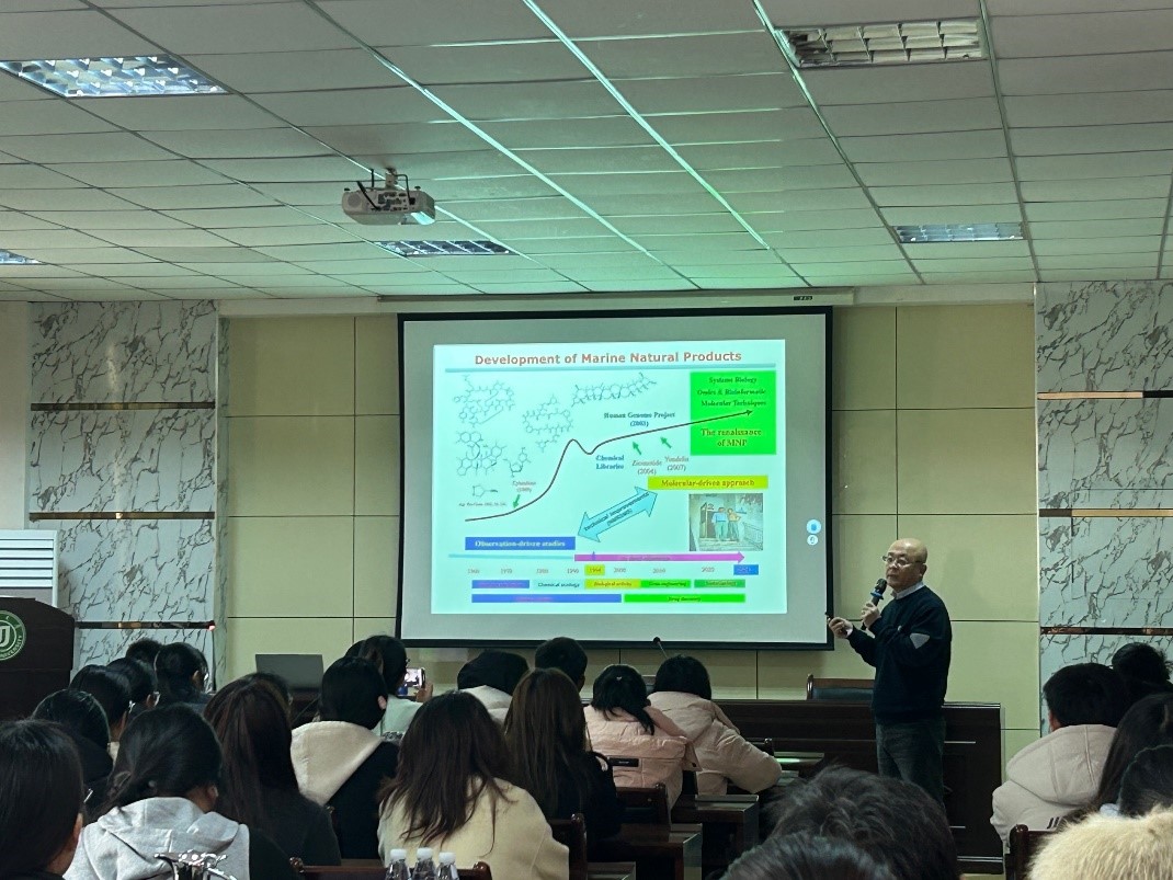 3月28日,鲁东大学生命科学学院举办“鲁东大讲堂”学术讲座,邀请国家杰青、中科环渤海(烟台)药物高等研究院/烟台新药创制山东省实验室-海洋药物研究中心主任郭跃伟研究员作了题为《蓝色无垠的海洋—创新药物的宝藏——我的30余载向海问药之旅:思源温故、展望知新》的学术报告。中科环渤海(烟台)药物高等研究院多位老师、研究生与生命科学学院师生聆听了报告。